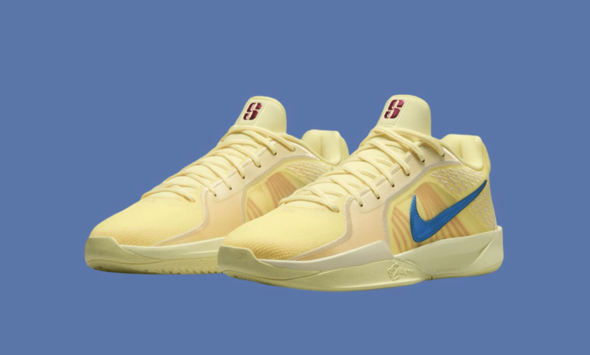 This upcoming colorway is officially named “Citron Tint,” featuring a vibrant yellow tone on the upper. The sneakers present a sleek monochromatic appearance, accented by alternating blue and deep rose Nike Swooshes on each shoe. They also incorporate a consistent red Flywire pattern along the mid panels for added stability, which aligns with the Sabrina logo on the tongue. Overall, this colorway strikes a balance, being visually engaging on the court without being overly ostentatious.
